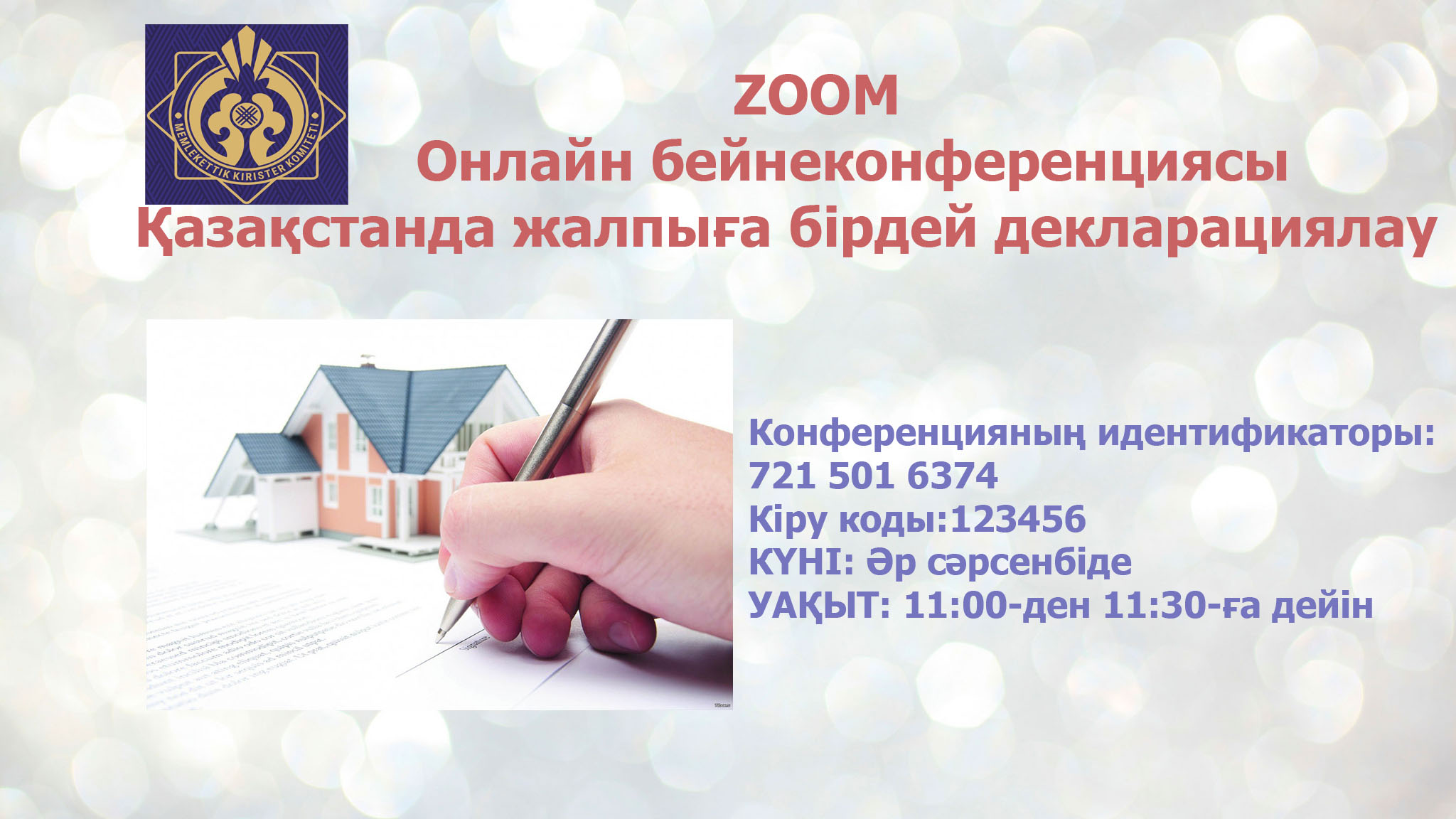 Ақмола облысы бойынша Мемлекеттік кірістер департаменті «сұрақ-жауап» форматында жалпыға бірдей декларациялау тақырыбы бойынша ZOOM бейнеконференцияны өткізу туралы хабарлайды.