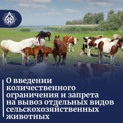 № 216 «О некоторых вопросах вывоза сельскохозяйственных животных с территории Республики Казахстан» вводятся количественные ограничения на вывоз с территории Республики Казахстан крупного рогатого скота живого (код ТН ВЭД ЕАЭС 0102) в количестве 60 000 (шестьдесят тысяч) голов бычков, а также овец и коз живых (код ТН ВЭД ЕАЭС 0104) в количестве 120 000 (сто двадцать тысяч) голов баранчиков сроком на шесть месяцев (ссылка на приказ: http://zan.gov.kz/client/#!/doc/182580/rus).