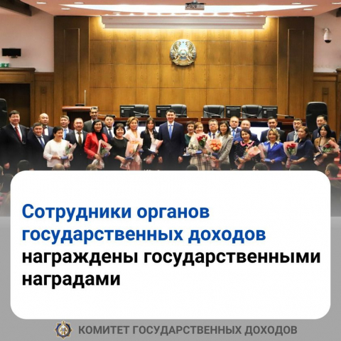 В преддверии праздника Дня Республики Заместитель Премьер-Министра – Министр финансов Республики Казахстан Ерулан Жамаубаев вручил государственные награды сотрудникам органов государственных доходов: